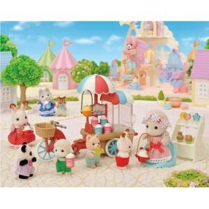 The Popcorn Delivery Trike set Includes Barbara the Sheep Mother in an exclusive outfit, plus a popcorn trike and all the accessories needed to enjoy running a popcorn stall.Turn the handle behind the popcorn maker to make the popcorn bounce up and down!This fun and colourful set contains all kinds of accessories, such as lollipops and muffins.The stall can be removed to make it a regular tricycle, with a baby seat at the back!Combine with the Baby Amusement Park, Baby Windmill Park or Baby Balloon Playhouse (all sold separately) for a full theme park play experience!Contents: Sheep mother, Tricycle, Popcorn Maker, Popcorn x6, Popcorn Cup (Pink) x2, Popcorn Cup (Blue) x2, Popcorn Bucket (Rabbit), Popcorn Bucket (Bear), Scoop, Heart Lolly, Star Lolly, Round Lolly, Rabbit Muffin, Cat Muffin, Shelves